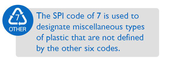 Kod SPI 7 jest używany do oznaczania różnych rodzajów tworzyw sztucznych, które nie są zdefiniowane przez pozostałe sześć kodów. Poliwęglan i polilaktyd są zaliczone do tej kategorii. Tego rodzaju tworzywa sztuczne są trudne do recyklingu. Poliwęglan lub PC jest używany w butelkach dla niemowląt, dużych butelkach z wodą (pojemność wielu galonów), płytach kompaktowych i pojemnikach medycznych. Recyklingowi tworzyw sztucznych w tej kategorii służą między innymi wytwarzanie tarcicy z tworzyw sztucznych.